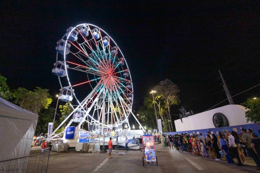 Um dos grandes destaques da Vila Círio Iluminado é a roda gigante itinerante de 36 metros de altura, considerada a maior do Pará. A atração é gratuita para toda a família e oferece uma vista panorâmica espetacular de Belém.