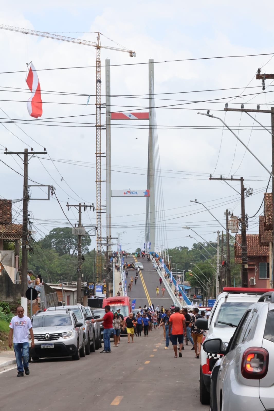 “É importante registrar que esta ponte foi concebida e planejada exatamente no ponto onde, lá na década de 1980, ainda se usavam balsas para integrar as pessoas que moravam nesta região. Foi ali que, no governo do então governador Jader Barbalho, foi construída a primeira ponte, a Eneas Pinheiro. Há poucos anos, após um sinistro com uma balsa que colidiu com o pilar central, tivemos que retomar a travessia por balsas. Isso mostrou o quanto era difícil o deslocamento das pessoas sem uma ponte segura. Tomamos então a decisão de construir esta nova estrutura, antes mesmo da escolha de Belém como sede da COP30, como parte de um planejamento que prepara nossa cidade para o futuro”, afirmou o governador.