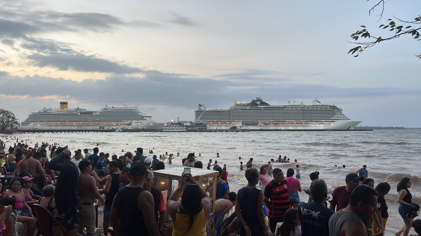 Os dois navios transatlânticos, MSC Seaview e Costa Diadema, estão servindo como hotéis flutuantes durante a COP30. A presença das embarcações mudou a rotina da ilha. Além de atrair curiosos, os navios impulsionaram a economia local.