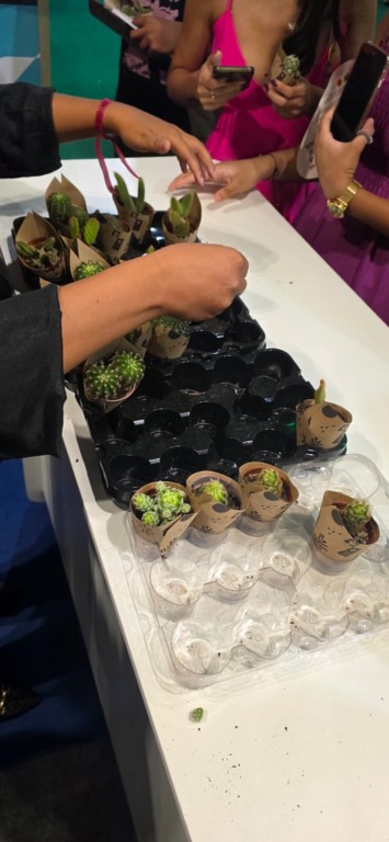 No Consórcio Brasil Nordeste, os pequenos cactos são o grande chamariz. Distribuídos após as palestras da manhã, geralmente entre 10h e 11h, os vasos minúsculos se tornaram símbolo instantâneo do estande. À tarde, a distribuição continua, mas o ritmo cai devido à programação mais intensa, e os brindes se esgotam rapidamente. Ainda assim, a busca por um dos cactos faz com que muitos visitantes fiquem de olho no fluxo do estande durante todo o dia.