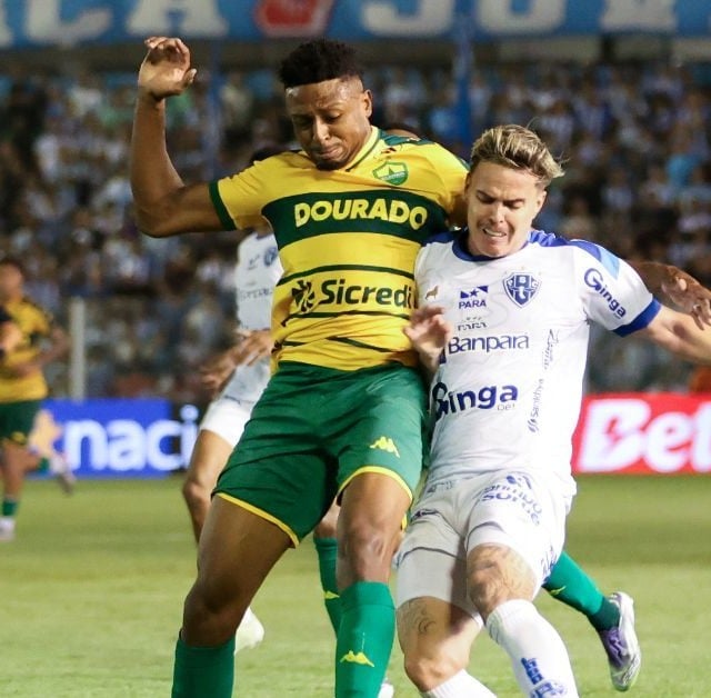 Sem se incomodar com a pressão da torcida, o Dourado começou a partida pressionando o Papão. O visitante era superior, com mais força ofensiva. A 1ª tentativa do Cuiabá aconteceu aos 7 minutos, em tentativa de Mateusinho e que não deu em nada. Em outra investida, Carlos Alberto chutou em cima de Nogueira. O Cuiabá formava um “paredão”, dificultando as ações do Papão, que não conseguia sair da marcação inimiga, acuado o tempo todo. Até que, aos 19, Reverson cobrou falta perigosa, com o goleiro Luan desviando para a linha de fundo. Foi a 1ª chegada bicolor.