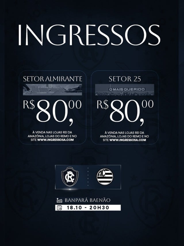 O Clube do Remo iniciou, nesta quarta-feira (15), a venda de ingressos para o confronto contra o Athletic-MG, válido pela 33ª rodada da Série B do Campeonato Brasileiro. A partida será neste sábado (18), às 20h30, no Estádio Baenão, em Belém.
