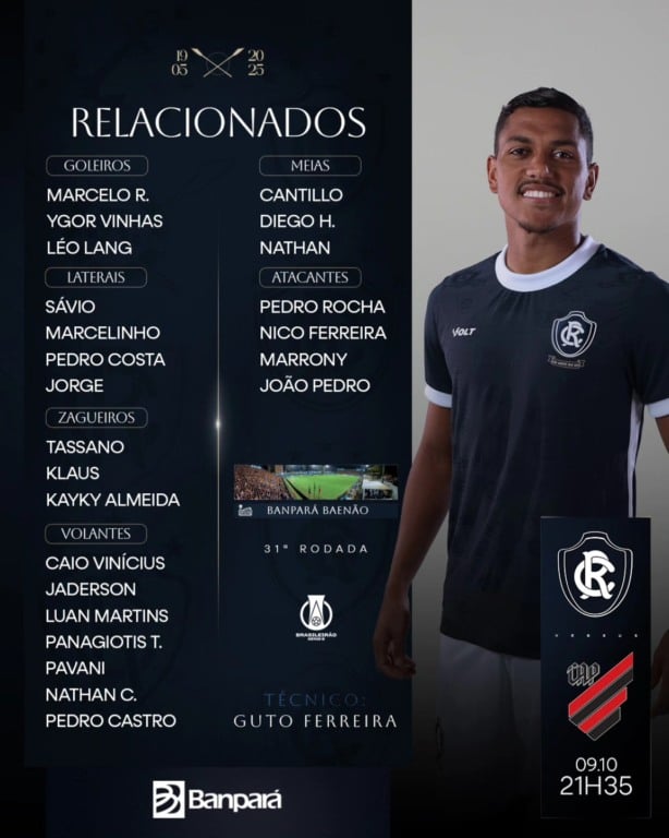 Por outro lado, o técnico ganha um reforço importante: o atacante Pedro Rocha, que retorna após se recuperar de lesão e pode ser uma das novidades no time titular.