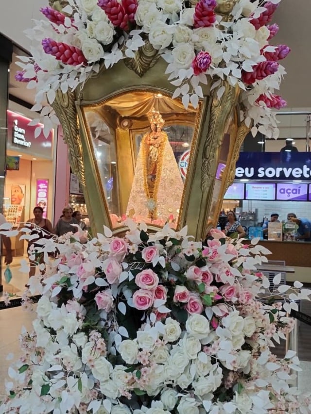 Até o dia 20 de outubro, o público que visitar o Pátio Belém poderá contemplar a homenagem especial dedicada à Nossa Senhora de Nazaré. A pedido da Administração do Shopping, a Diretoria do Círio cedeu uma réplica da berlinda, que compõe o acervo da festividade, para ficar em exposição no 1º piso.