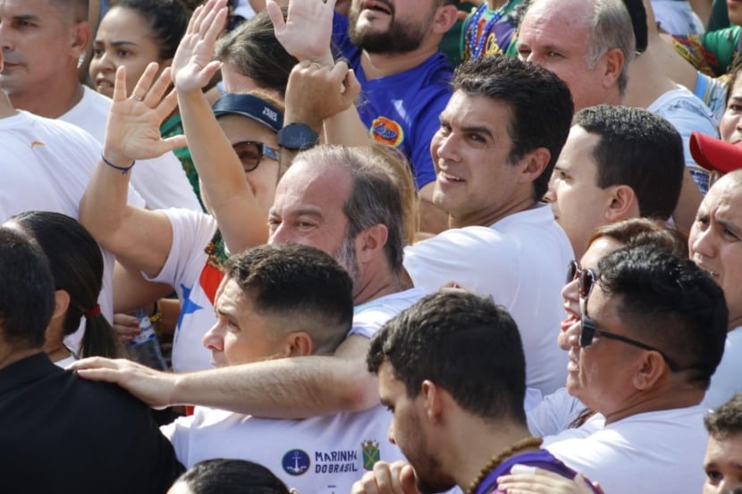 Como faz todos os anos, o governador do Pará, Helder Barbalho, abriu mão do palanque oficial do governo na Estação das Docas para acompanhar a procissão do Círio de Nazaré junto aos romeiros, no chão, lado a lado com os fiéis, na Boulevard Castilhos França.