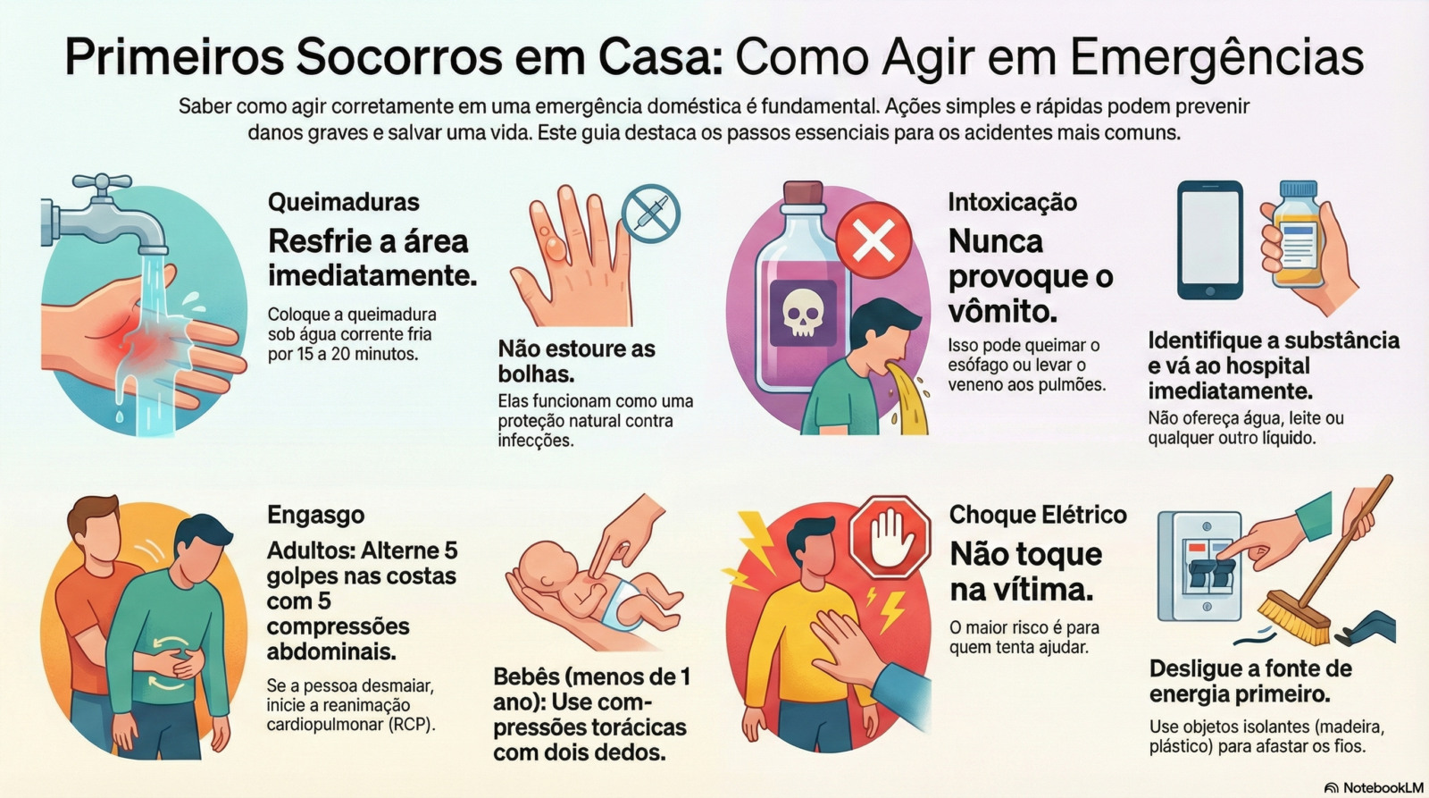 Saber como agir em casos de quedas, queimaduras, choques elétricos, engasgos, intoxicações ou situações graves, como parada cardíaca, é fundamental. E vale lembrar: manter sempre à mão os números de emergência é a primeira medida de segurança.