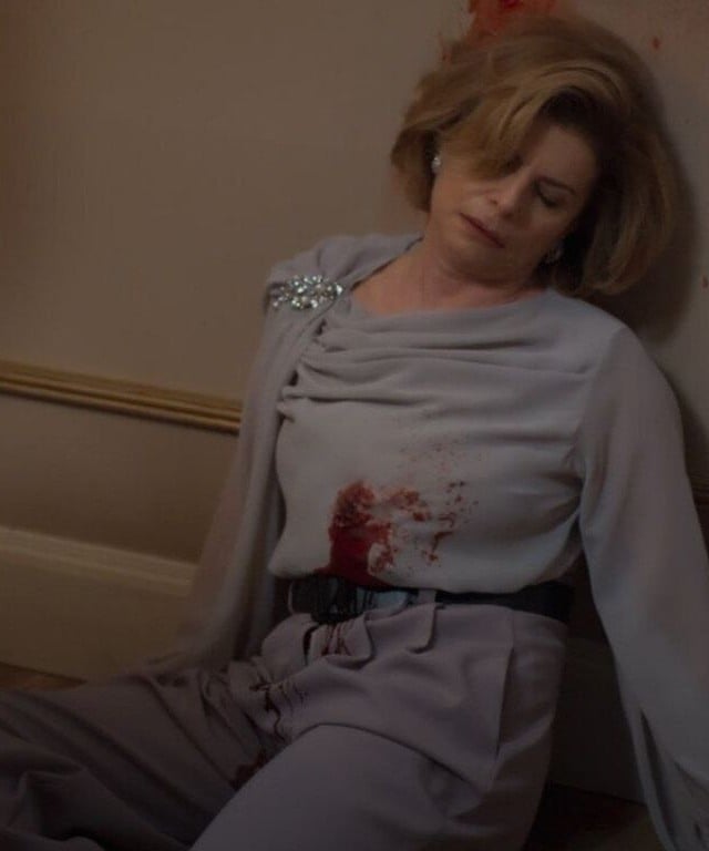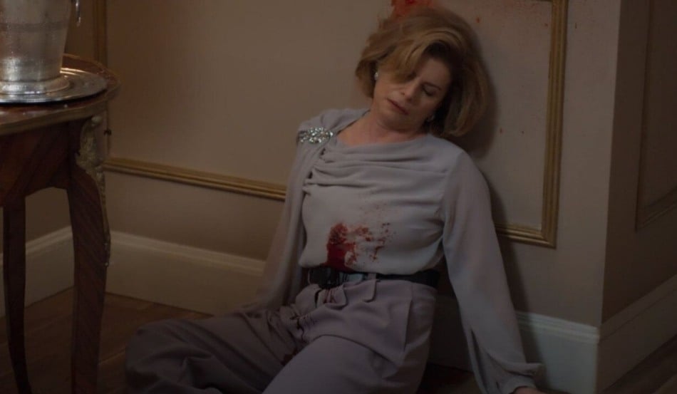 Na recriação da cena icônica, Odete é surpreendida na suíte presidencial do Copacabana Palace, hotel de luxo na Zona Sul do Rio. Do ponto de vista do assassino, o público vê a vilã sendo ameaçada com um revólver. Em tom desafiador, ela tenta negociar sua sobrevivência: “Meu bem, ninguém tem coragem de atirar em Odete Roitman!”, diz. A tentativa falha, e a bilionária é atingida por um tiro no peito. Ela cai lentamente, deixando um rastro de sangue na parede.