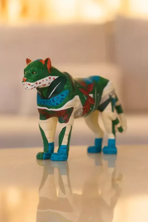 Mais do que um souvenir, as miniaturas oficiais da Jaguar Parade são verdadeiras obras de arte, produzidas artesanalmente no Studio Jaguar Parade, em Florianópolis (SC). Cada peça é feita em resina de alta resistência e pintada à mão por uma equipe de artistas especializados em design e ilustração, o que torna cada onça única em seus detalhes e acabamento.
