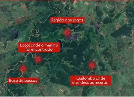 A área onde os trabalhos estão concentrados tem cerca de 15 quilômetros quadrados e fica entre o Quilombo São Sebastião dos Pretos e o povoado Santa Rosa, local onde Wanderson foi encontrado. A distância é de aproximadamente quatro quilômetros, em linha reta, do ponto inicial do desaparecimento.