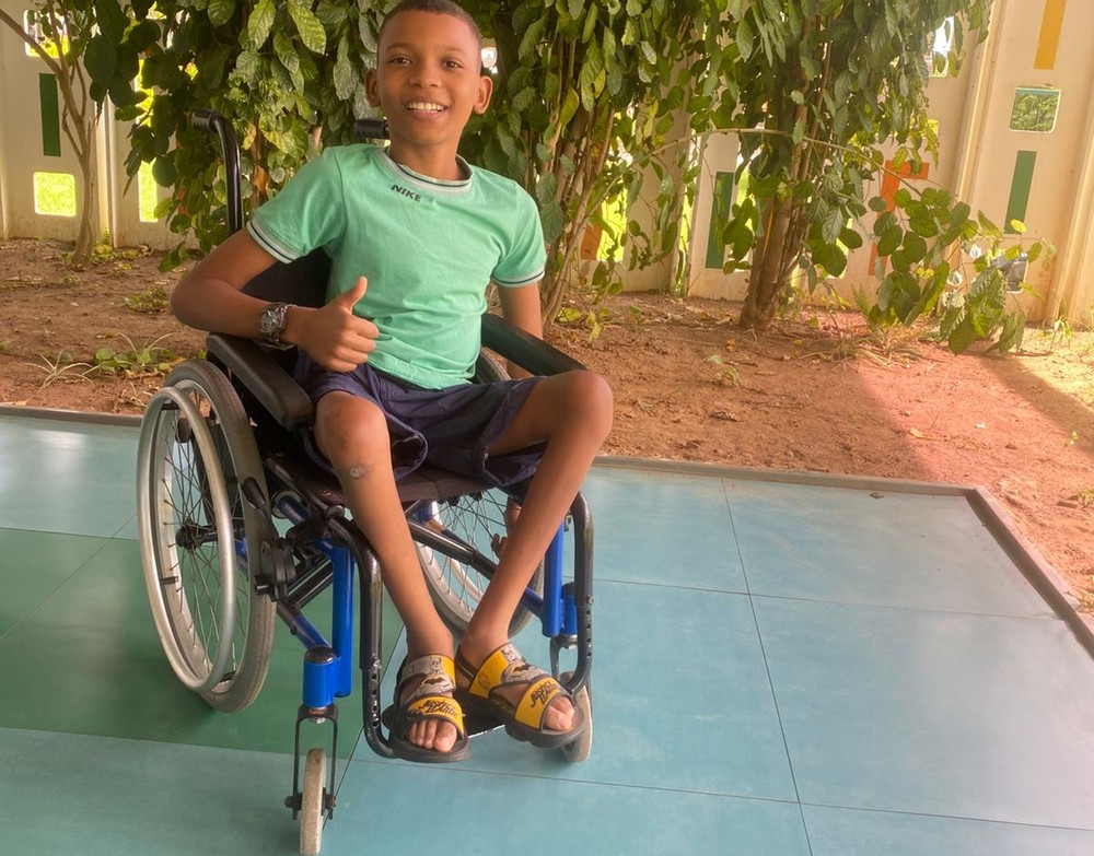 A cadeira de rodas automática é o grande desejo de Adrian, algo que a família não tem condições de comprar.