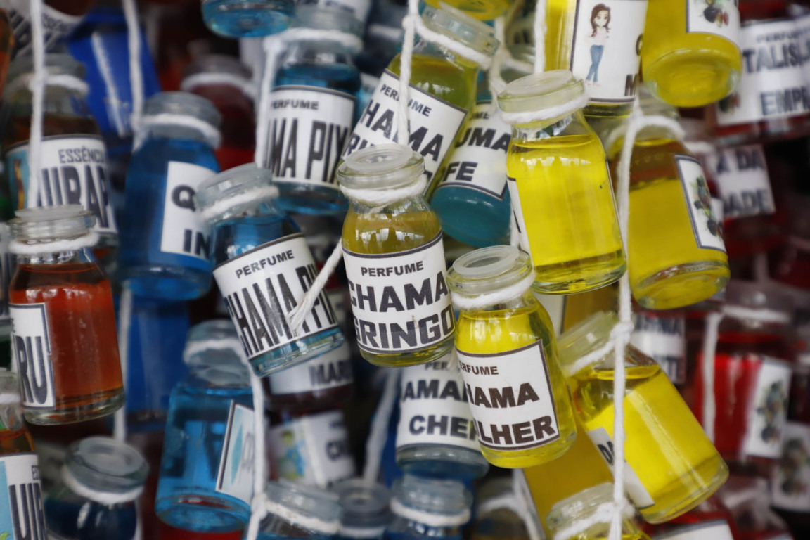 Para garantir um romance amazônico com sotaque estrangeiro, a erveira Áurea Freire, de 59 anos, mais conhecida como Áurea Cheirosinha, trabalha há mais de 30 anos no Ver-o-Peso e garante que o perfume é um verdadeiro “imã de gringos”.