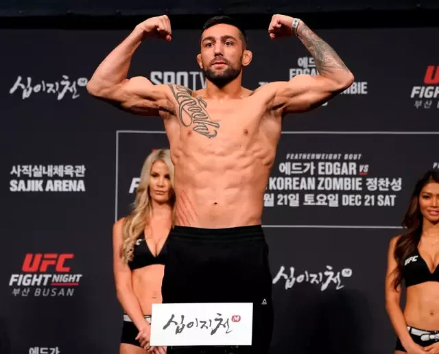 Suman Mokhtarian em pesagem para luta no UFC Foto: Jeff Bottari/Zuffa LLC/Getty Images