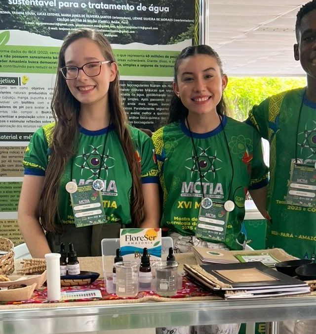 Com a missão de fortalecer a alfabetização científica e estimular projetos que contribuam para o avanço social, educacional e econômico da região, a MCTIA selecionou o CMBEL como finalista com dois projetos de alunos do Ensino Médio, orientados pelas professoras 1º Ten R2 Janes (Química) e 2º Ten Lienne Silveira (Biologia).