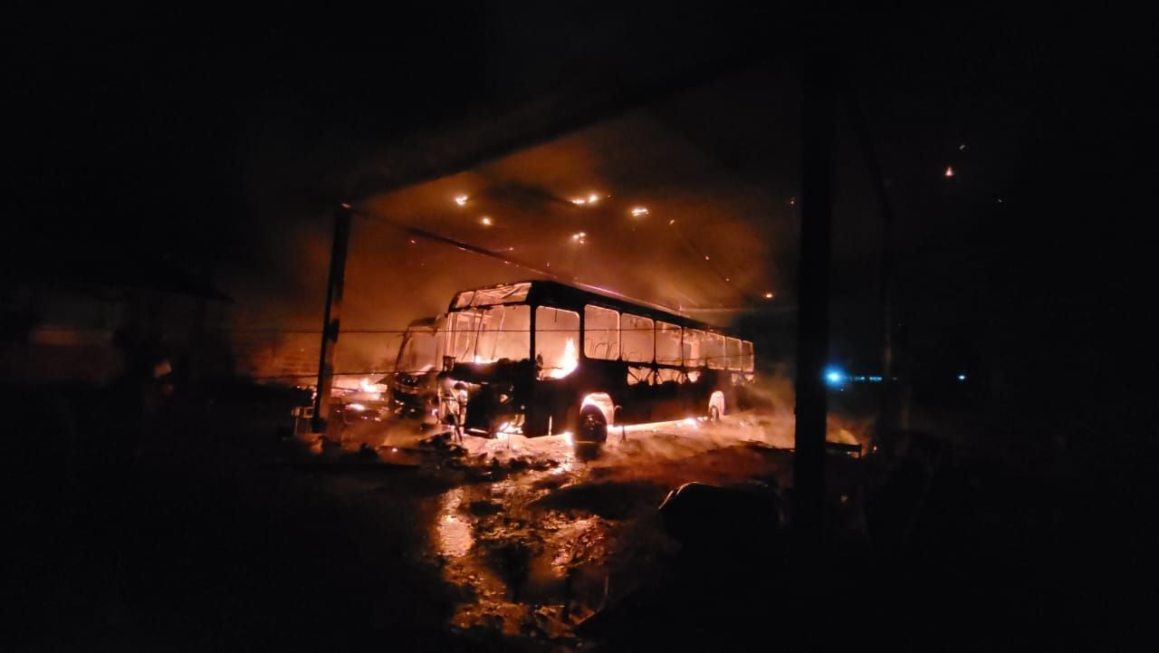 Durante a madrugada de hoje criminosos invadiram a Vila Sococó, zona rural de Moju (PA), e atearam fogo em dois ônibus e uma caminhonete, causando pânico entre moradores. O ato incendiário destruiu os veículos e gerou mobilização de equipes de combate a incêndio da região.
