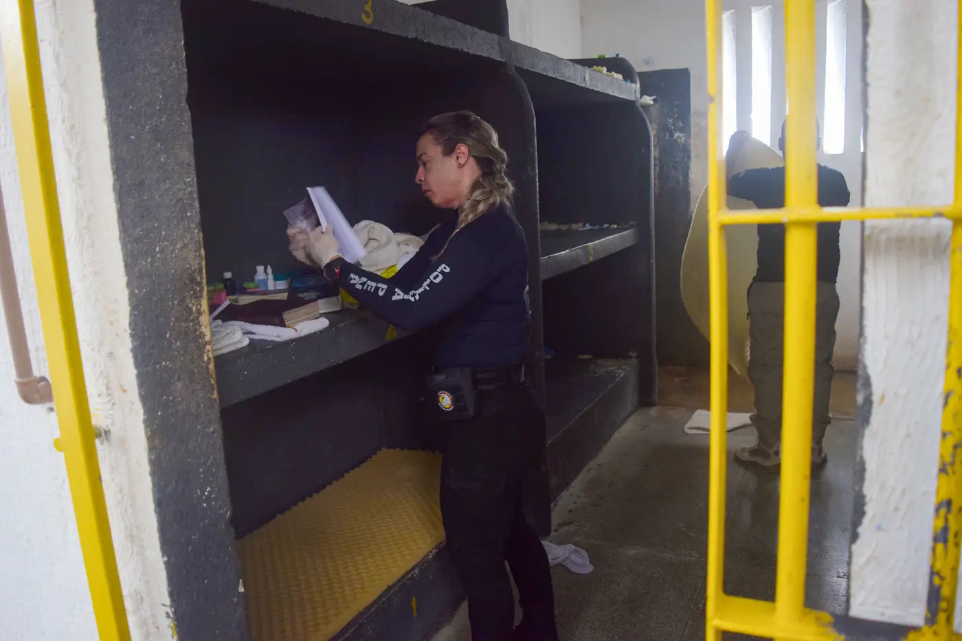 A revista preventiva é minuciosa, realizada em todos os blocos da unidade, cela por cela, com suas estruturas avaliadas diretamente pelos policiais penais para verificarem qualquer tipo de alteração nas paredes e grades.