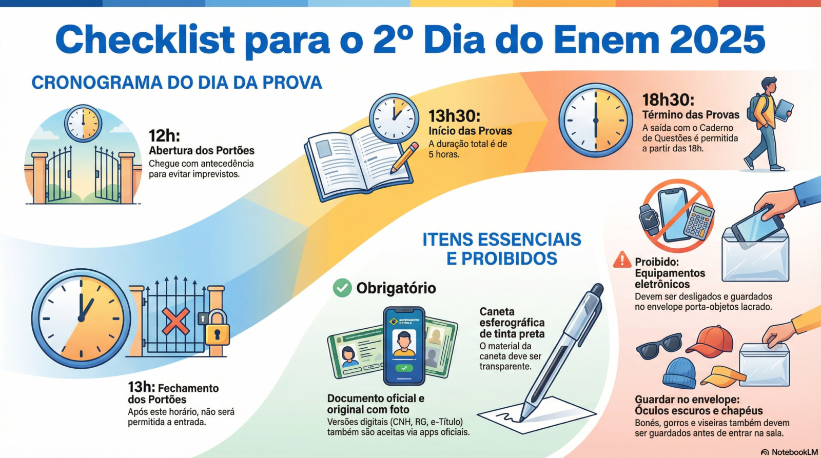 O segundo dia de provas do Exame Nacional do Ensino Médio (Enem) promete movimentar milhares de candidatos nos municípios de Belém, Ananindeua e Marituba no próximo domingo (7). Os estudantes responderão 45 questões de múltipla escolha de Matemática e outras 45 questões de Ciências da Natureza (Química, Física e Biologia) na etapa final do exame. Depois, é só aguardar os resultados, previstos para o início de 2026. Neste segundo dia não há redação. Por isso, a prova termina 30 minutos mais cedo, às 18h30.