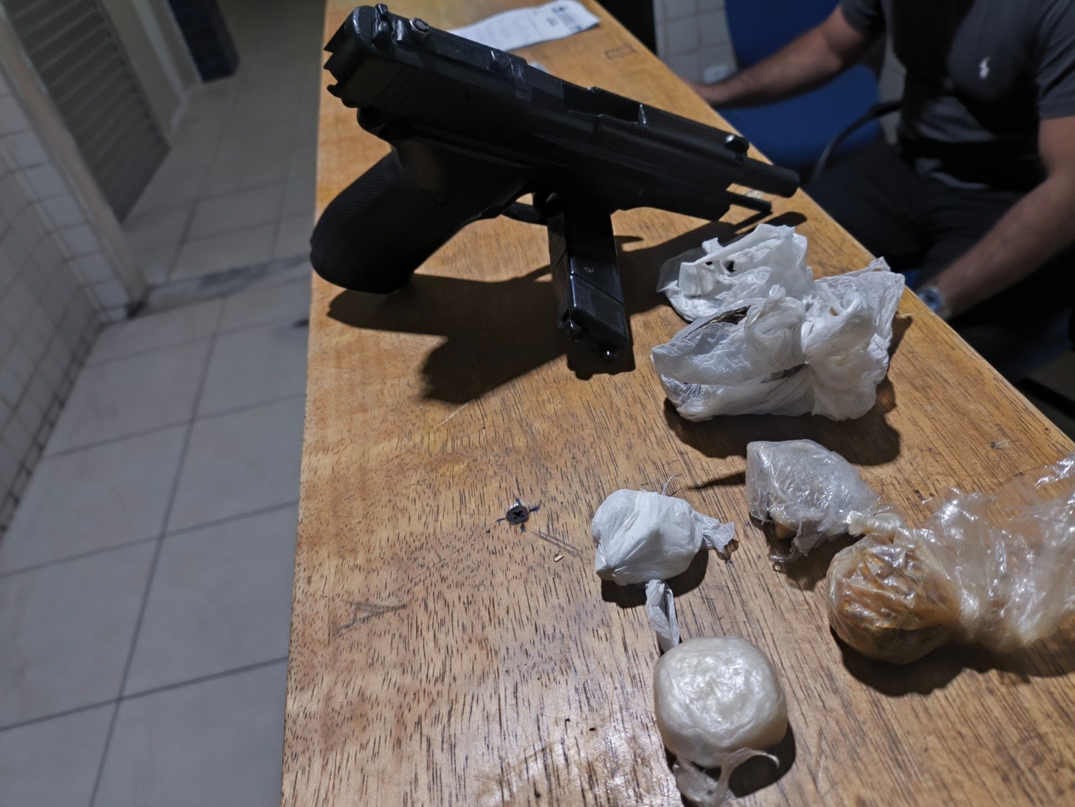 A PM informou que ele já foi acusado pelos crimes de roubo, cometido com arma de fogo, e tráfico ilícito de drogas. Durante a vistoria, foram encontrados entorpecentes, um estojo com munições e um celular. Todo o material será periciado pela Polícia Civil.