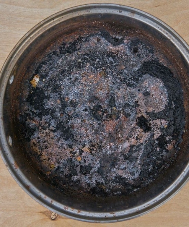 • Despeje na Panela Queimada: Com cuidado, despeje essa mistura sobre a panela que precisa ser limpa.