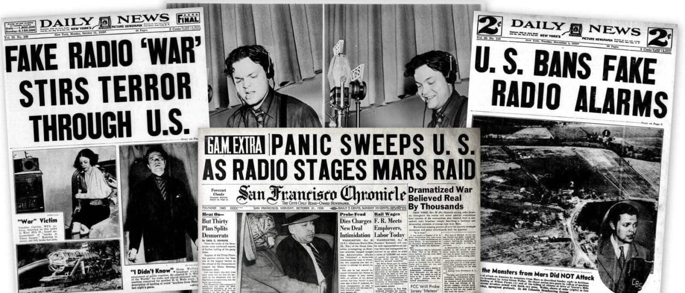Primeiro porque os jornais do dia anunciaram a dramatização da obra de H.G. Wells, datada de 1898, por Orson Welles e companhia. Depois, avisos foram dados na estação de rádio, antes do começo do programa, de que se tratava de uma ficção. Mas nem todos leram ou ouviram, só assustaram-se com as “interrupções jornalísticas” durante a programação. Juntem-se a isso o fato de que a trama foi adaptada para a realidade norte-americana e o contexto sociopolítico que trazia da Europa os ares de uma nova Guerra Mundial. Pronto. Estava montado um cenário propício para a disseminação do medo.